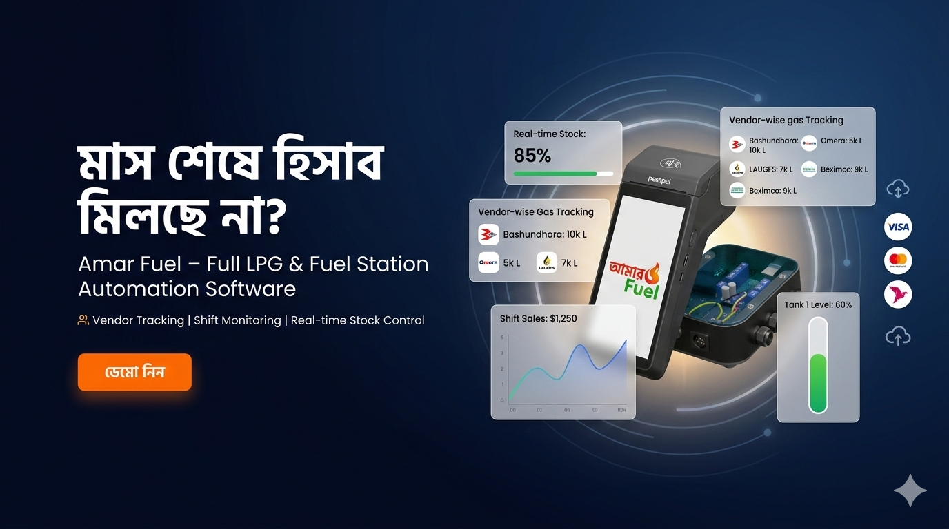 Smart AIoT Based Fuel & LPG Station Automation — শিফট ক্লোজিং, রিয়েল-টাইম ট্র্যাকিং, ক্যাশলেস পেমেন্ট।
